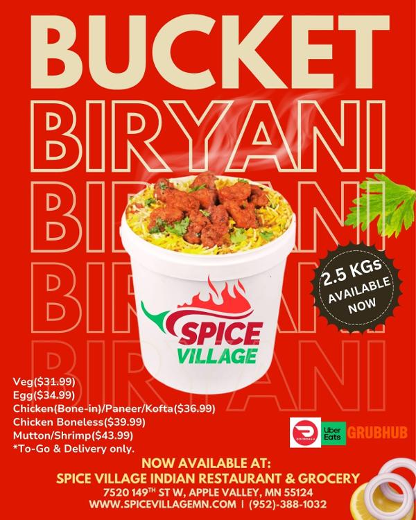 Level up your party with BUCKET BIRYANI and dive into the flavors, Spice Village style!