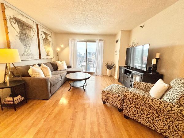 spacious 1-bedroom unit offers open concept living on the 17th floor with sweeping skyline views. Located steps from the Stone Arch Bridge in the heart of Minneapolis, it unlocks quick access to coffee shops, restaurants, grocery stores, trails, theaters, and sports venues. The unit features an updated kitchen with stainless steel appliances, a walk-in-closet, in-unit washer/dryer, 1 heated parking space, and nearby storage.