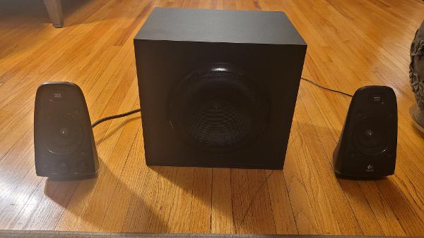 Top quality Logitech Z623 2.1 Speaker System for Sale in South Minneapolis (near Lake Harriet) Cost of new speaker $199. Selling for $29. Gently used for a few years. In very good condition. Two speakers and one subwoofer deliver clear sound with nice bass response. 200 watts RMS power.