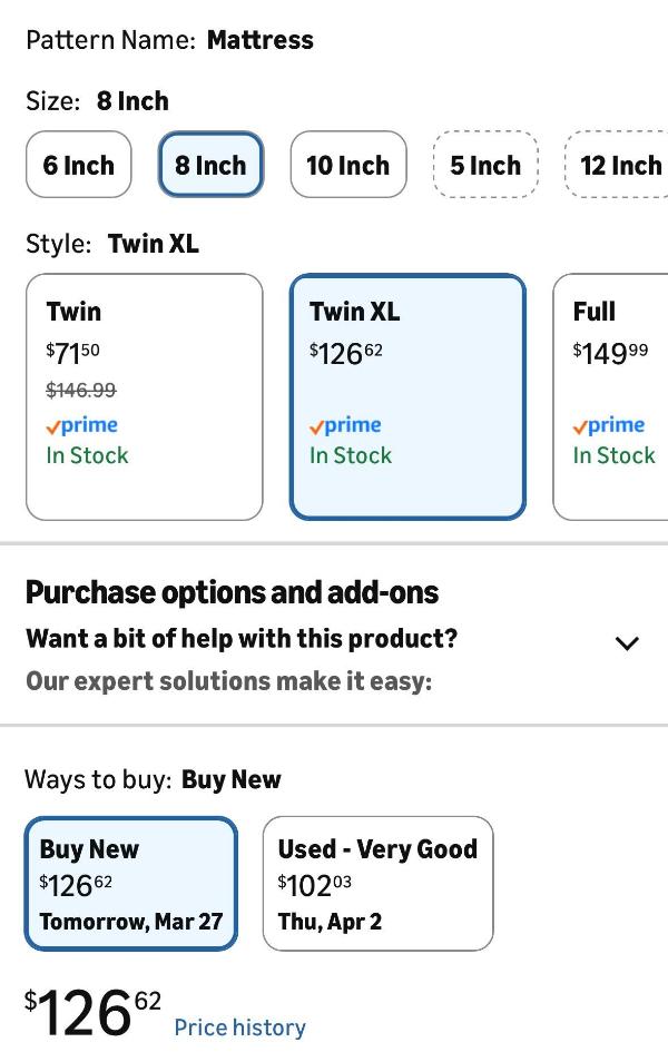 8 Inch Twin XL Mattress from Amazon. Medium Firm.
