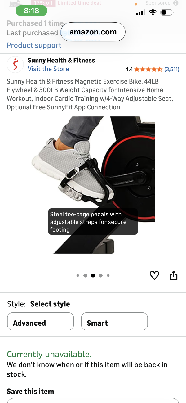 Sunny health and fitness bike in great condition.