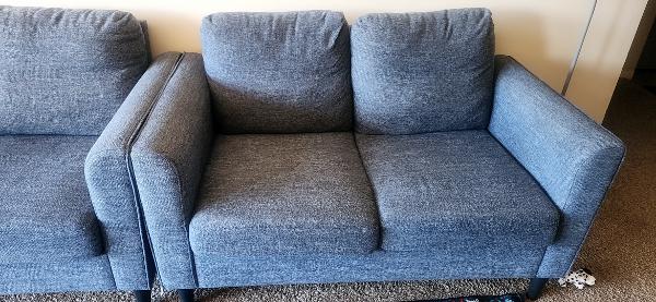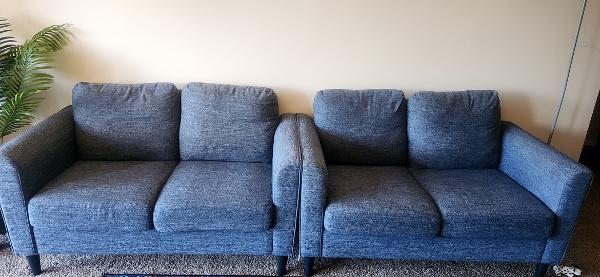 Set of two beautiful loveseat couch for your living room, blue in color. Good condition. Immediate move out sale. Must go by this month end or Nov mid.