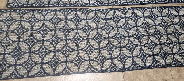 Set of two rugs with beautiful pattern, anti skit, in a good condition. Perfect for kitchen, hall area, dining area entry area of house. Immediate move out sale. Must go by Nov mid.