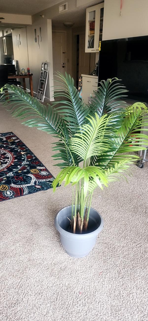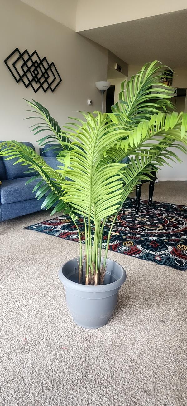 4ft fake palm tree for home/ office decor. Green color and pot included.