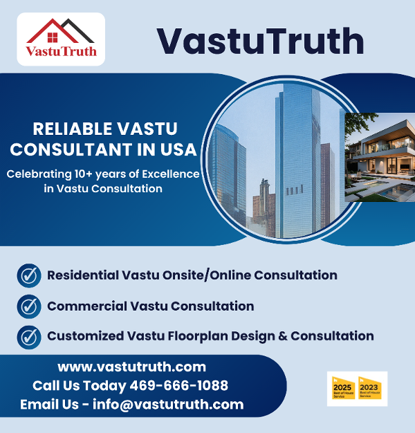 VastuTruth.com offers expert, science-based Vastu Consulting for homes, offices, and businesses across USA and Canada, with both onsite and online options for your convenience. VastuTruth is led by a highly experienced consultant living in USA for over 3 decades with a strong engineering and scientific background, bringing analytical rigor to every Vastu evaluation. Extensive experience with 9,000+ Vastu consultations across the USA has shaped deep practical expertise in residential, commercial, and builder-focused Vastu solutions. We are available from 8am to 6pm, seven days a week.